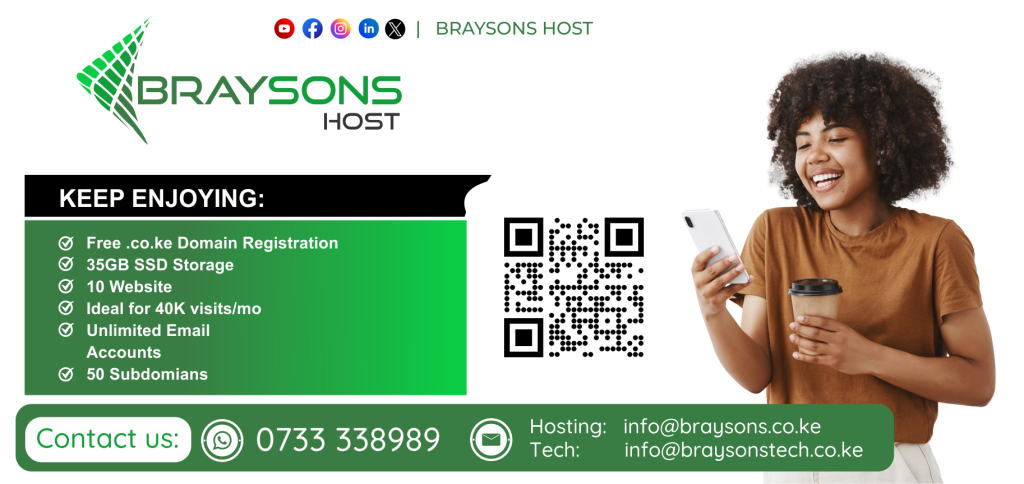 At Braysons Host, we make owning a website simple and affordable. Plus, when you host with us, you get a free .co.ke domain to give your brand a professional edge.